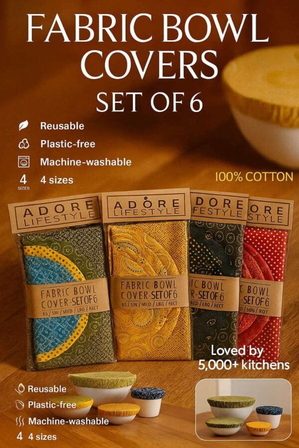 Easy to clean and durable, round and rectangular 100% Cotton bowl covers are perfect for covering salads, fruits, or leftovers, helping to preserve freshness naturally and sustainably.